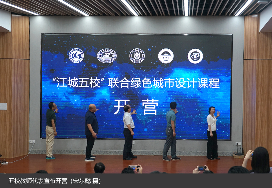9月29日,由我校437ccm·必赢国际、华中科技大学建筑与城市规划学院、武汉大学城市设计学院、武汉理工大学土木工程与建筑学院、湖北工业大学土木建筑与环境学院联合主办的“江城五校”联合绿色城市设计课程开营仪式在我校景园楼S1报告厅举行。会议受到全国风景园林专业学位研究生教育指导委员会、湖北风景园林学会等单位,《中国园林》《风景园林》《华中建筑》《新建筑》和《湖北风景园林》等期刊的支持。来自五校的约110名师生代表同聚景园楼参加开营仪式。