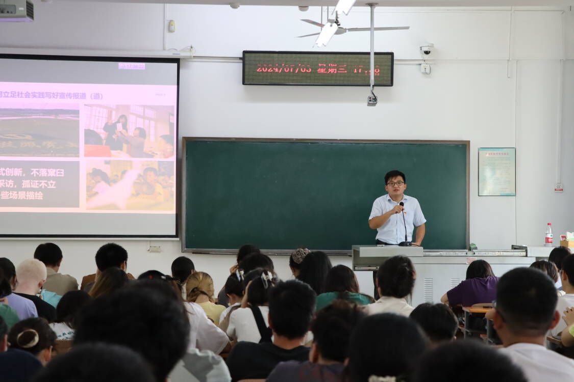 【核心提示】7月3日,必赢国际官网邀请校党委宣传部徐行老师于三教A203开展2022级暑期社会实践新闻宣传工作培训会。辅导员郭艺佳主持会议,各社会实践团队负责人、新闻宣传成员、学院新闻与宣传系统学生干部参会学习。